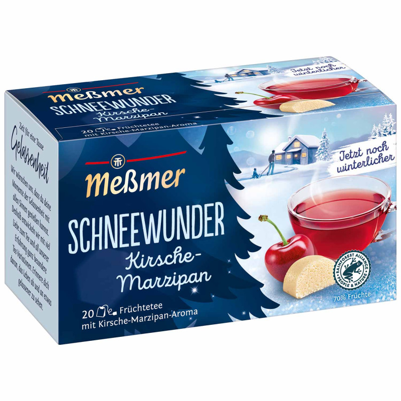 What could be better than enjoying a leisurely break in the winter with a soothing hot tea on the favorite sofa? The Schneewunder-Tee by Meßmer spoils you with a wonderful tea composition of many fruits and a delicious cherry-marzipan taste.